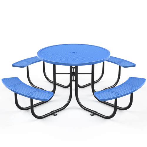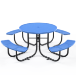 Need a spot to relax outside? Provide a spot to sit, rest, or eat. This typical circular design and movable commercial picnic table make it almost maintenance-free and ideal for usage in public picnic locations such as parks, campuses, schoolyards, neighborhoods, streets, campers, and other outdoor public spaces.