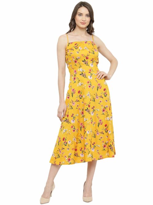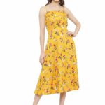 Aahwan Women’s Dress is ideal for the Semi-Formal party, Cocktail party, Business Casual, Vacation, etc. The Printed Dress is made from high-quality fabrics and finished in an attractive yellow color, which is a Regular fit.