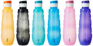 Shop this Plastic Water Bottle Set available in new style and 6 different shades of eye-soothing colors from Amazon at reasonable price. It is suitable to store water and beverage inside the refrigerator. They are very lightweight as it can be used by kids for school. It is made of good quality of plastic which can be stored easily in your refrigerator door pocket. The Solimo Plastic Water Bottle is 100 percent food Safe and BPA Free.