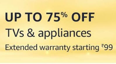 Get up to 75% discount on television and appliances including washing machines, refrigerators, LED TV, LCD TV, chimney, dishwasher, induction cooktop, fan, water purifier, Irons, and many more. So, don’t delay and grab this offer before ends.