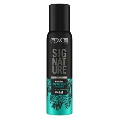 Axe Signature offers mysterious no gas deodorant bodyspray which is one of the best deodorants with tropical green fragrance. This fragrance is perfect for your day out, be it shopping, movies, or just chilling. It gives you a masculine appeal that stays all day long. Safe on skin. Fresh fragrance that is long-lasting.