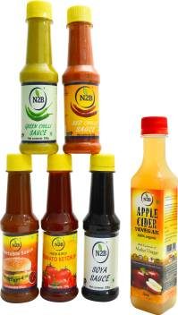 Buy N2B Green Chilli + Red Chilli + Vegetable Sauce + Tomato Ketchup + Soya Sauce, 200g each + Apple Cider Vinegar 250ml, 6 Combo for ₹385