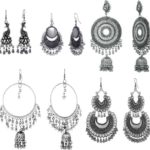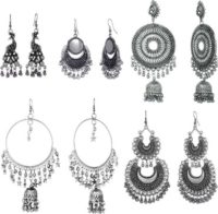 Every Indian women love to wear jewelry as it increases their beauty ten times more than their natural beauty. All silver jewelries look amazing whether it’s a necklace, anklet, ring, or something else that you love. Silver earrings look amazing when pair with the black dress or any Indian attire. Buy a combo of 5 pairs of Oxidized German Silver Earrings for ₹399. It consists of 3 pair of earrings which are big in size and 2 are comparatively smaller in size.
