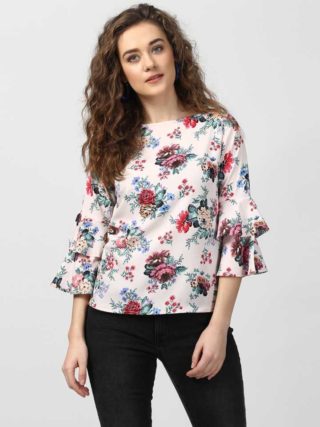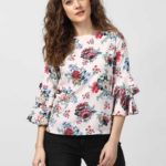 Casual Ruffled Sleeve Women Multicolor Top at ₹410.00