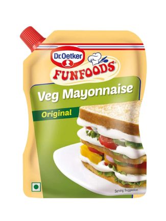 Fun Foods Egg less Mayonnaise is a India’s No.1 Mayonnaise. Its neutral and adaptable taste makes it perfect as a core ingredient for a wide array of western dishes such as sandwiches, burgers, wraps and quick white-sauce for macaroni. Super saver 875 g pack. Veg Mayonnaise is an innovation from Fun Foods by Dr. Oetker that was done keeping in view that many Indians are vegetarian. Cholesterol & Trans Fat Free.