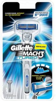The Gillette Mach 3 Turbo are treated with an Advanced Anti-Friction Coating, allowing the MACH3 Turbo to remove each hair with less feel of irritation. Soft, protective Microfins gently smooth down the skin, allowing the MACH3 Turbo to shave evenly and effortlessly. The Indicator Lubrication Strip helps ensure that your Mach 3 Turbo razor blade keeps gliding across your skin, shave after shave.