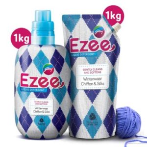 Godrej Ezee Liquid Detergent Approved by Woolmark Company for washing of woollen apparel. Ezee liquid detergent has a special ‘No Soda’, pH neutral formula that gently cleanses your woollens from within. Its in-built micro conditioners make your woollens soft, fluffy and looking as good as new always! With a spill-proof nozzle. Even the measurement cap is designed in an innovative way, if there is any residual liquid in the cap it goes back right into the bottle. That means, zero wastage.