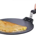 Hawkins Futura Non-stick Dosa Tava made from high-quality aluminium with a unique patented process. It’s High quality non-stick German coating. The flange, which firmly attaches the handle with strong stainless steel rivets, is uniquely designed to not interfere with the cooking surface and to hence maximise the cooking area, allowing you to make a very large dose, or several uttapam or cutlets at one time. The 4.88 mm extra thick heavy gauge metal ensures fast and even heat conduction and retains heat well. The Dosa Tava is suitable for domestic gas and radiant electric cooktops.