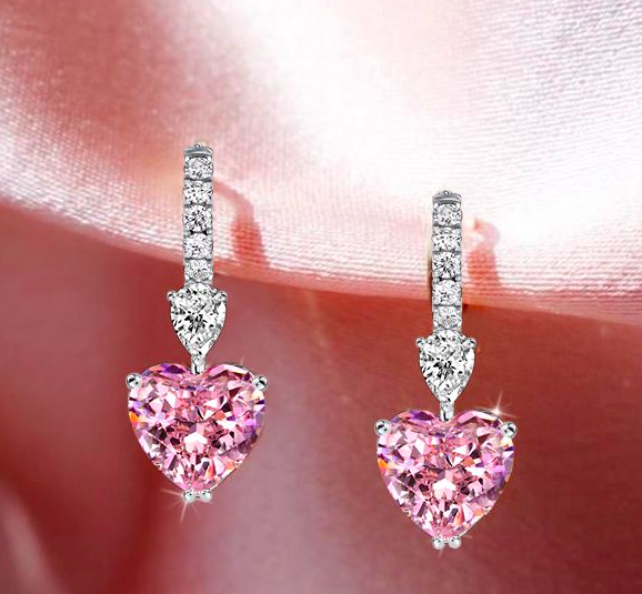 Heart & Pear Cut Pink Sapphire Drop Earrings @ $129.95 | Italo Jewelry