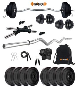 Home Workouts provides daily workout routines for all your main muscle groups. In just a few minutes a day, you can build muscles and keep fitness at home without having to go to the gym. So, Kore PVC provides a combination of all workout equipment for the perfect exercise. It’s highly durable And Long Lasting equipment. The Kore PVC Provides 16kg PVC Weight which is 2 kg x 8 = 16Kg, curl rod, dumbbell rods, leather gym gloves, 1 Gym backpack, 1 Skipping Rope, 1 Hand Gripper, 2Locks and clippers come with the rods.