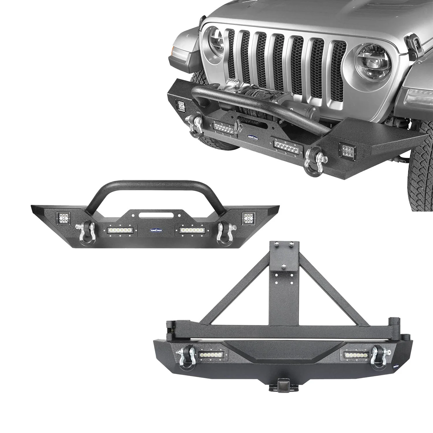 Hooke Road Front Bumper & Rear Bumper w/Tire Carrier(18-24 Jeep Wrangler JL) | @ $789.99