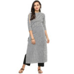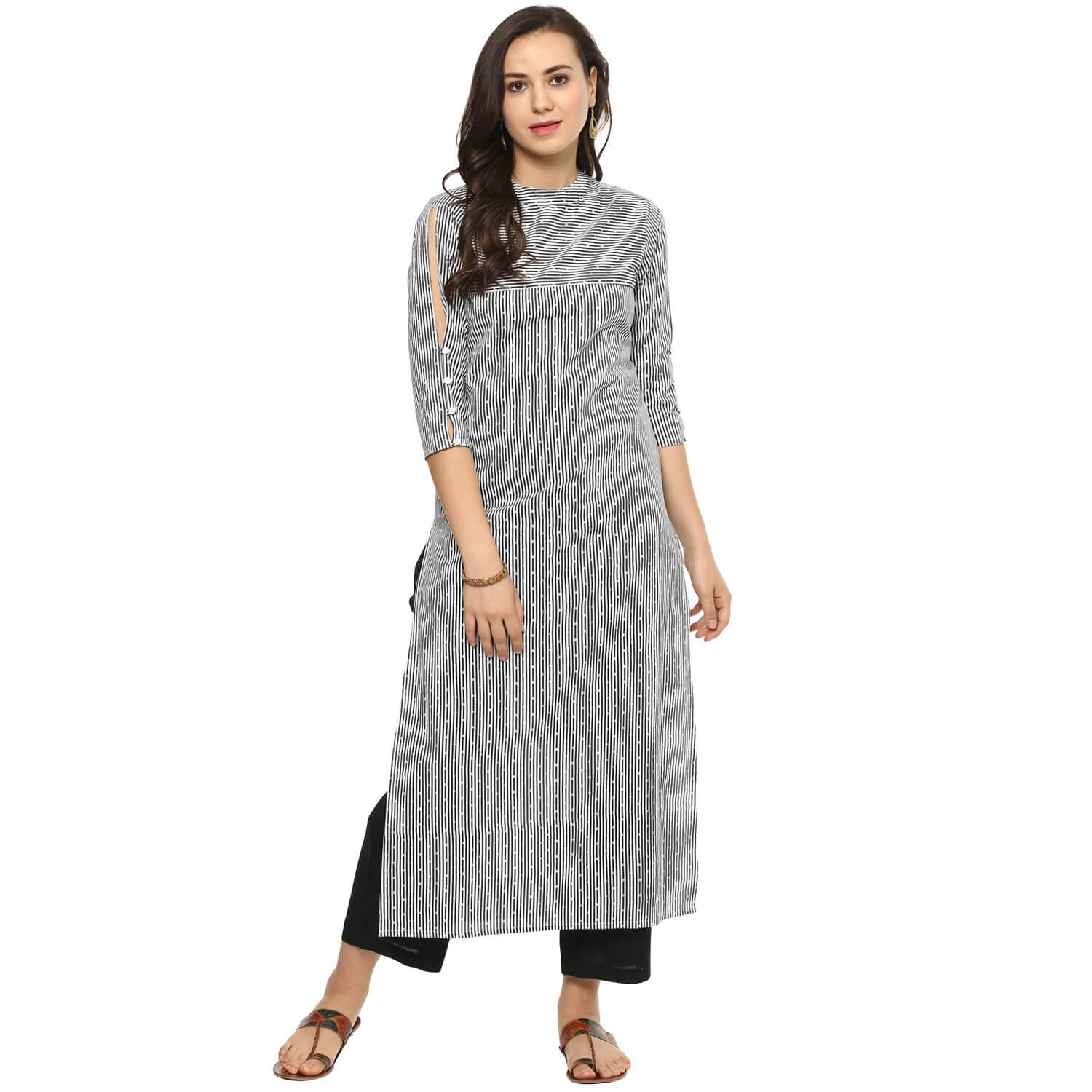 - Pattern- Dotted stripped black & white straight kurta