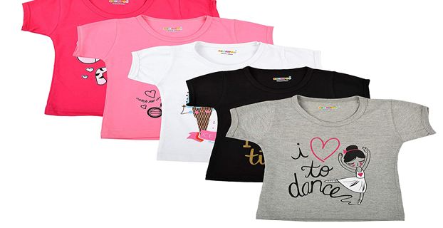 Kuchipoo Girl’s Cotton T-Shirt(Pack of 5) at ₹499.00