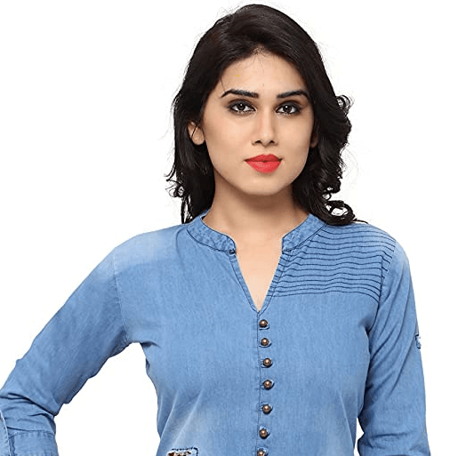 Buy Kvsfab Women’s Indo Western Denim Kurta Only At Rs769 Price: Rs769.00 (Free Delivery). Wearing denim has become so stylish and trendy these days. It gives modish look not only to men but also to women. Denim shirts and kurtas are becoming popular among youngsters. Kvsfab Women’s Indo western Denim Kurta looks very stylish as it have few rips on the right side of the kurta that enhances the grace of the kurta. It has fashionable buttons on the collar and small pocket on the left side which gives stylish look to this casual wear.