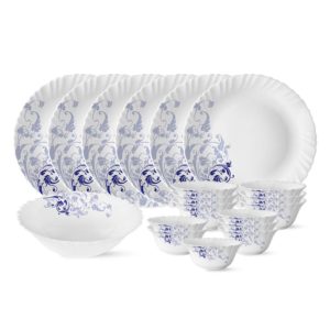 Larah by Borosil Blue Eve Silk Series Opalware Dinner Set (19 Pieces, Blue Eve Silk) at ₹1,230.00