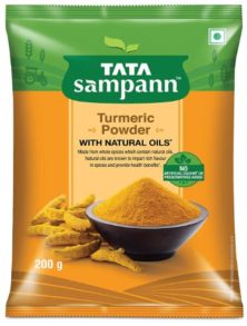 Tata Sampann Turmeric powder contains 3% curcumin content. This ingredient is known to give turmeric its deep orange colour and therapeutic properties. Tata Sampann Turmeric Powder Naturally sun-dried, scientifically processed, Tata Sampann Turmeric Powder is sourced from Salem, Tamil Nadu. Selected varieties of authentic origins are hygienically packed to keep their natural oils intact and maintain the natural goodness of turmeric. Ordinary Haldi powder has only 2 – 2.5% curcumin content but Tata Sampann Turmeric Powder has at least 3% of curcumin that offers its rich yellow colour.