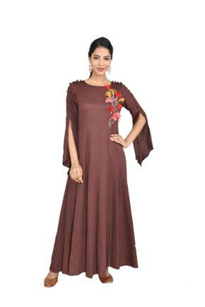 Vedic Women’s Poly voile Embroidered Long-Top is ideal for Family party, Casual, Festivals and others purpose. The Embroidered Long-Top is made from high quality poly voile fabrics and finished in a attractive dark brown color, which is Regular fit..This wonderful Pure Embroidered Long-Top will be a new addition to your clothing collections.